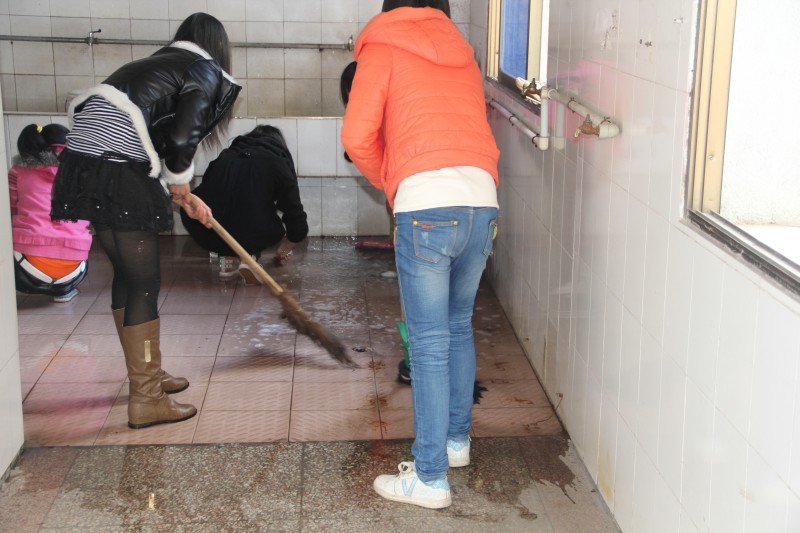 同学们以班级为单位,由班主任统一指挥,在班主任带领下分工进行大扫除。同学老师都亲自动手,参与进来,不一会儿,校园就干干净净了。