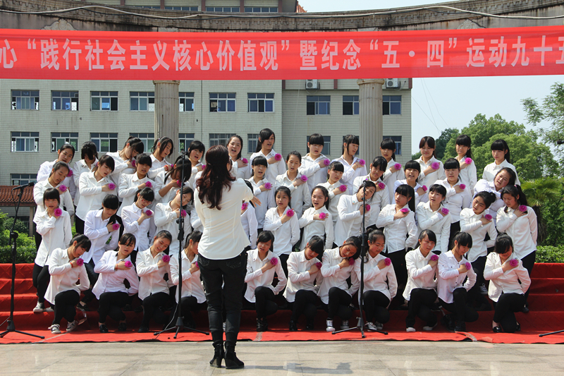 为丰富学生的课余文化生活,进一步激发学生的爱国主义热情,增强学生集体荣誉感,夯实社会主义核心价值观教育,该校在学校灯光球场成功举办了“践行社会主义核心价值观”暨纪念“五·四”运动九十五周年合唱比赛。