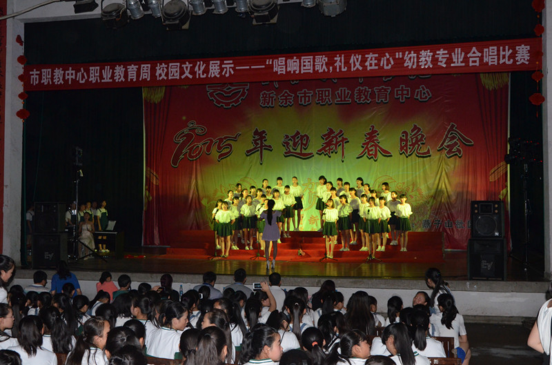 本次比赛分2015级学前教育组和2013、2014学前教育专业组两部分,学校16支合唱队参加比赛。“起来!不愿做奴隶的人们,把我们的血肉,筑成我们新的长城……”比赛在15学前教育3班激昂的国歌声中拉开帷幕,全体起立共唱国歌,全班同学穿着统一服装,在班主任老师简令宇的指挥下,伴着音乐,放声歌唱自选歌曲《阳光总在风雨后》;15学前教育1班的歌者向在场的观众诉说着暴风雨后新余的有爱故事,她们在班主任老师刘芳专业激情的指挥下歌唱《在灿烂的阳光下》。接下来专业组的比赛更是精彩绝伦,舞蹈、钢琴伴奏、朗诵、手语、情景剧等多种表演形式轮番上演,来自14学前教育7班的合唱队怀着感恩的心,通过情景剧的表现手法歌唱《每当走过老师窗前》献给悉心教导她们的老师;上届合唱比赛冠军队带来赣南民歌《斑鸠调》,在灵动跳跃的音符下展现了江南春的美丽,姑娘们完美的演绎,赢得场下观众的阵阵掌声,整场比赛在热闹的歌声中落下帷幕。