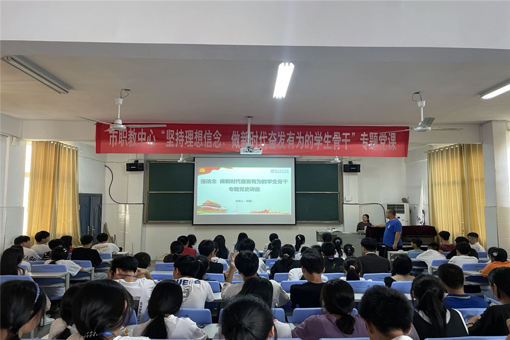 为庆祝中国共产党建党100周年,深入开展党史学习教育,引导学生会干部在党史学习中重温峥嵘岁月,传承红色基因,坚定理想信念。6月23日下午,市职教中心团委书记林露在团校为学校全体学生会干部讲授了题为《坚持理想信念,做新时代奋发有为的学生骨干》的党史学习教育主题党课。