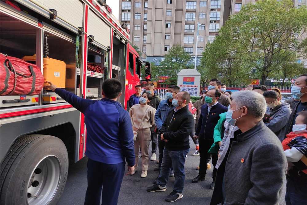 渝水消防中队指战员为第二党支部老师们精心准备了一份消防安全“盛宴”,深入中队参观了正规化建设成果,从班宿舍到库室,规则的被子、平整的床单、干净的地面、整齐的装备无不显露着队伍严肃的纪律和扎实的作风。在操场,党员参观体验了消防救援装备,指战员通过讲解和演示的方式向老师们展示了各种救援装备的用途和使用方法。