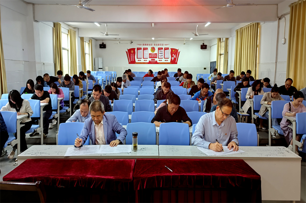为持续深化学习贯彻党的二十大精神,进一步引导广大党员干部学深、学懂、学透党的二十大精神,自觉用党的创新理论统一思想、指导实践,真正把学习成果转化为前进动力。4月13日下午,市职教中心在教学楼B201举行“学习党的二十大 踔厉奋进新征程”知识竞赛活动,校党委班子成员以普通党员身份和全体党员共同参加竞赛,竞赛由校党委副书记黎宇督考。
