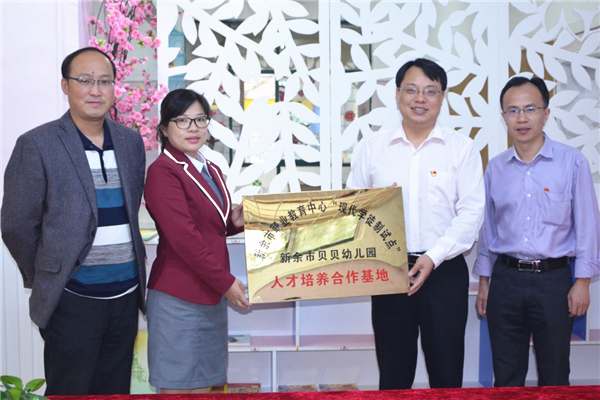 519日上午,新余市职业教育中心校长刘焦华、工会主席宋兵、教务处主任喻青勇等一行人参观考察了新余市贝贝幼儿园,双方就校企合作及联合开展现代学徒制试点合作进行了深入交流与研讨,校长刘焦华和贝贝幼儿园园长习飞燕代表校企双方签订了“现代学徒制”试点校企合作协议。