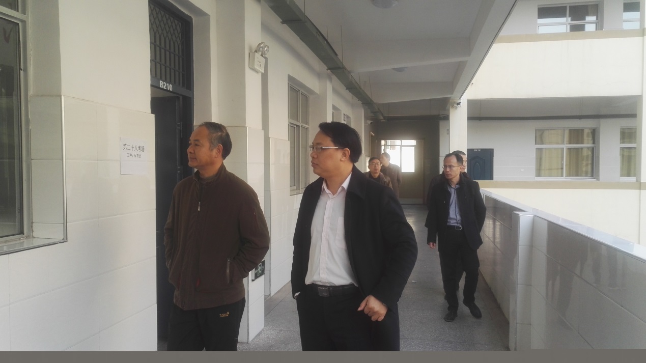 鉴定期间,新余市人力资源和社会保障局副调研员胡琪、胡海涛科长、余建平主任等领导在学院院长刘焦华、工会主席宋兵、教务处主任喻青勇的陪同下,到我院进行巡视指导,现场督查。胡琪一行对我院职业技能鉴定工作做出了充分肯定,对考场的组织管理、考场纪律和考生考试状态表示满意。