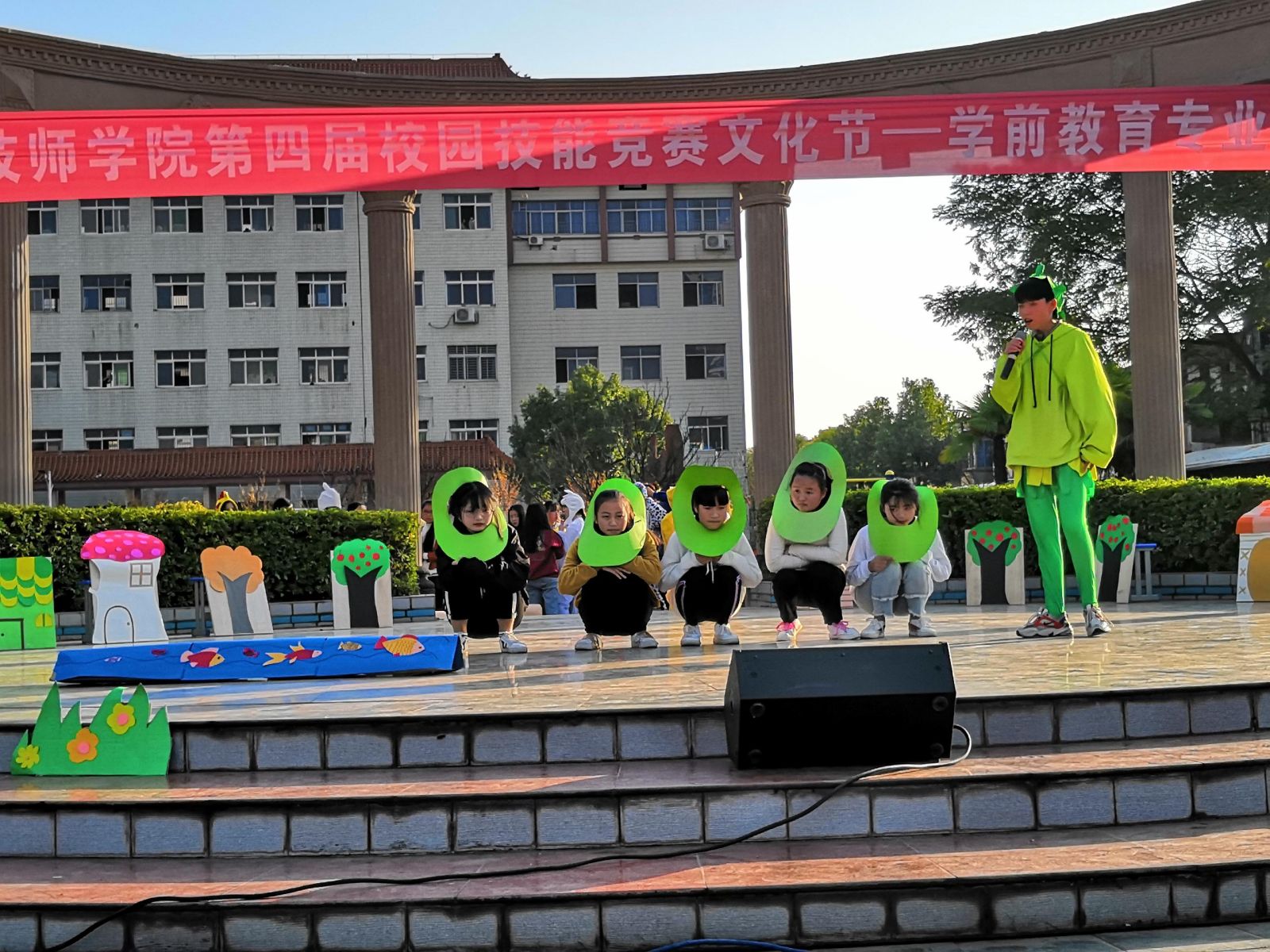 竞赛分17级和18级两组,以班级为单位表演童话剧。要求以童话为内容,戏剧为形式创作故事并进行舞台表演。通过手工制作,歌舞创编等一系列的艺术形式来展现我校学前教育专业风采。