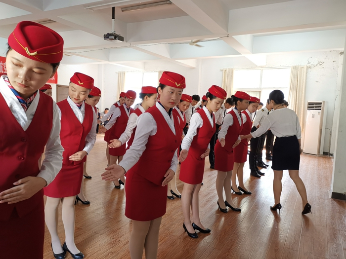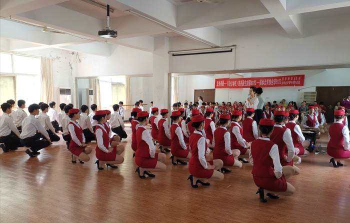 5月10日严珍教师在形体礼仪课上向学生讲解五种指引手势(横摆式、双臂横摆竖、曲臂式、直臂式、斜臂式)的用法和标准,教师通过现身示范,引导学生情景模拟,让学生现场体验了民航服务礼仪的魅力,培养了学生举止优雅的航空职业行为素养。
