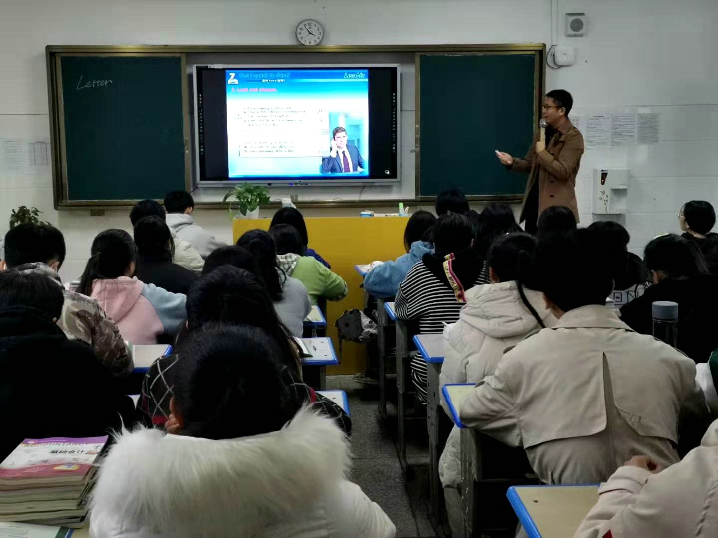 黄信老师所选的基础模块英语1《Unit 7 Can I speak to Wang Yang?》一课。整堂课黄老师以听音频,看视频,口语练习的方式开展教学,不仅调动了学生的积极性和主动性,也激活了学生的思维,学生在快乐的学习氛围中享受学习的乐趣。