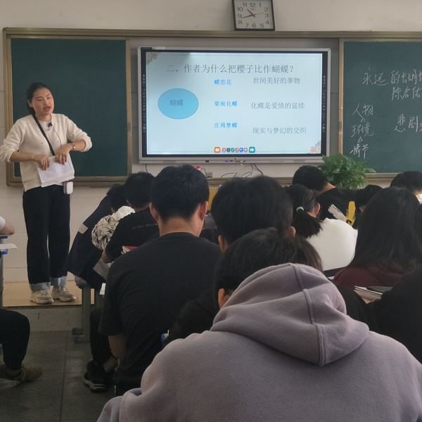 讲课当天,各语文老师都积极走进课堂听课,在课堂上三位新进教师充分展示了她们个人独特教学风采,她们自然的教态,幽默风趣的语言,精美的课件都给语文组老师留下了深刻印象。