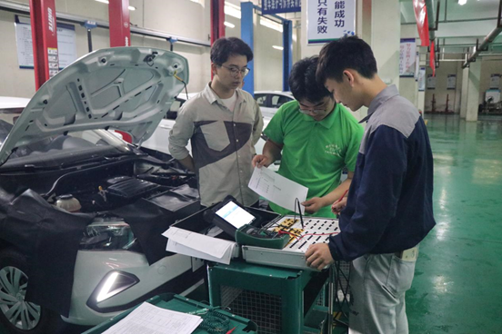 为了彰显职业教育风采,提高学生学习积极性,2021年5月27日下午,汽修教研室在职教中心汽车实训厂举办了汽车电控发动机故障诊断比赛。比赛为双人赛,经学生主动报名和专业老师选拔,此次共有9组经验丰富的选手参赛。