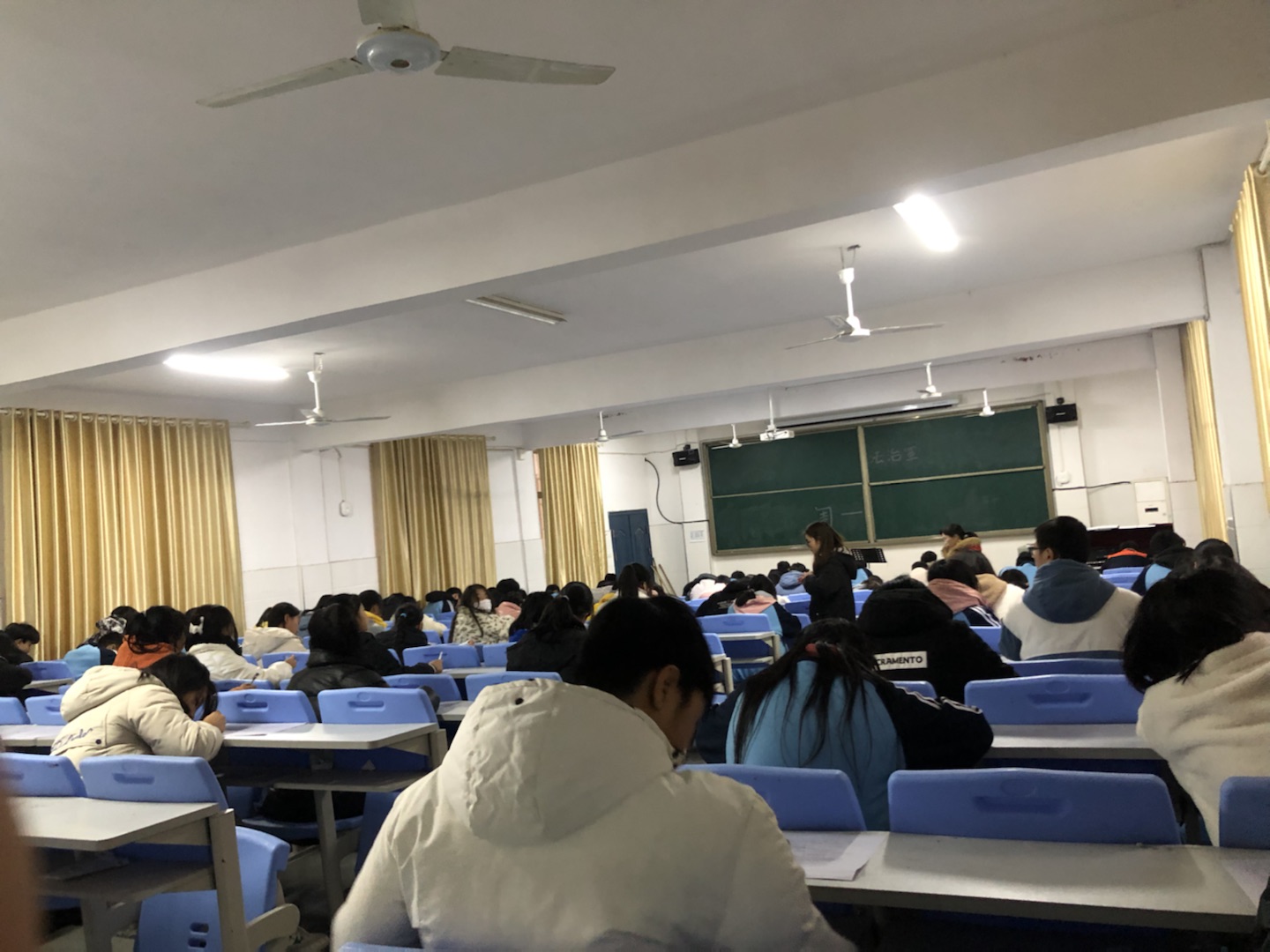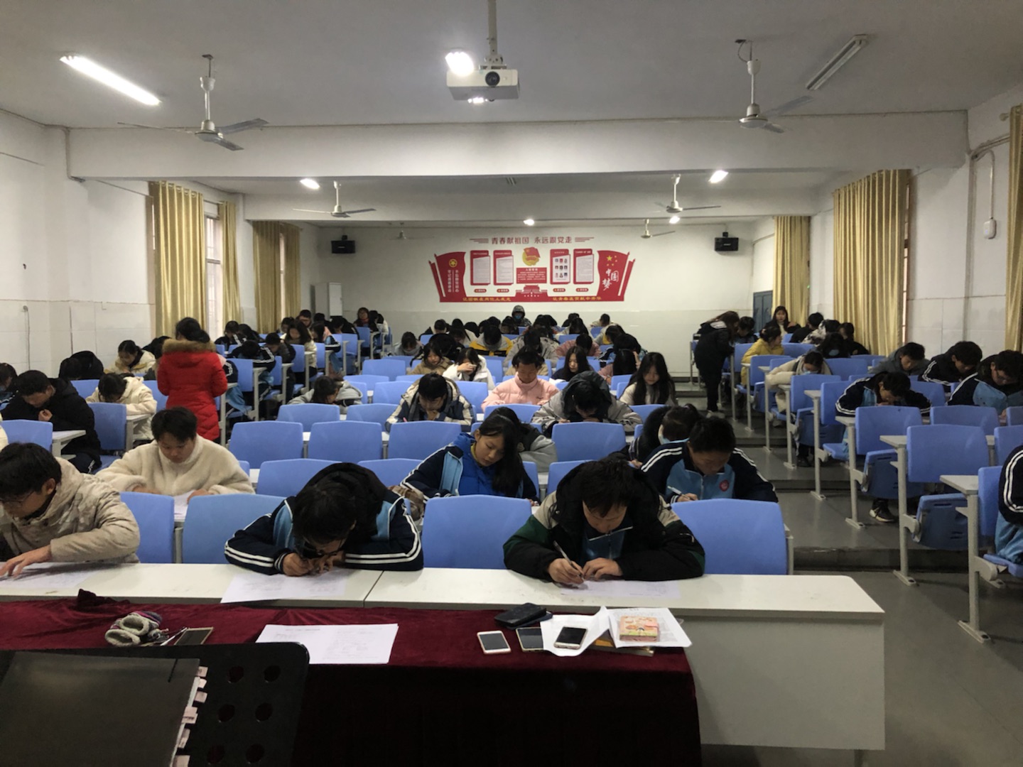 竞赛现场气氛紧张,秩序井然,参赛选手认真思考,神情专注,沉着答题,在争分夺秒中展现自己平时的积累能力。