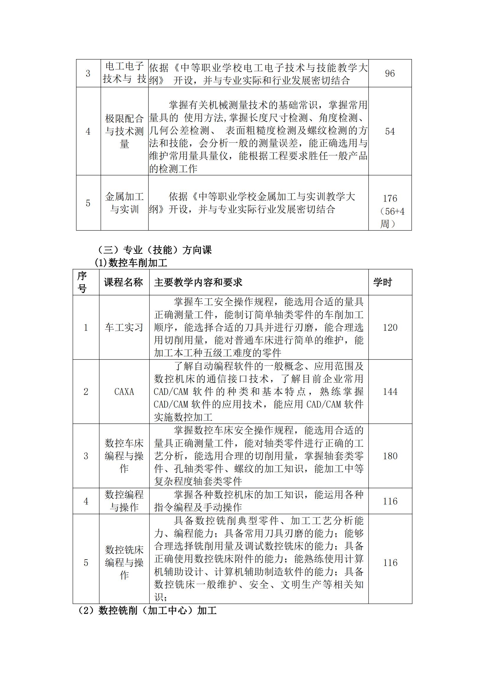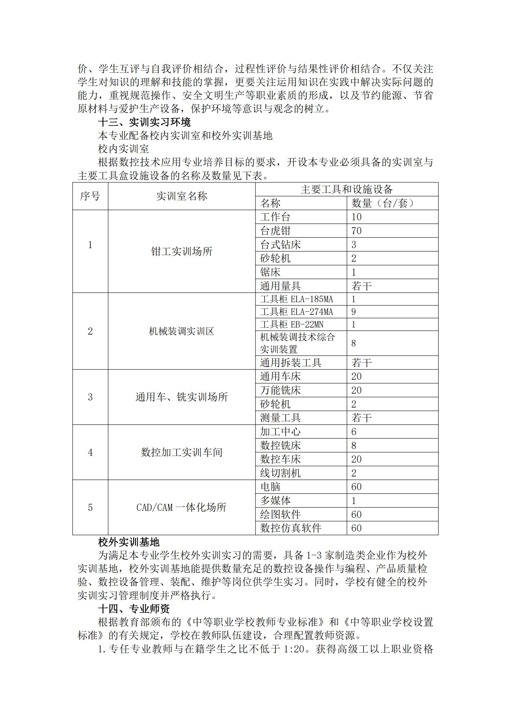 ◇ 新余市中等专业学校数控技术应用专业人才培养方案