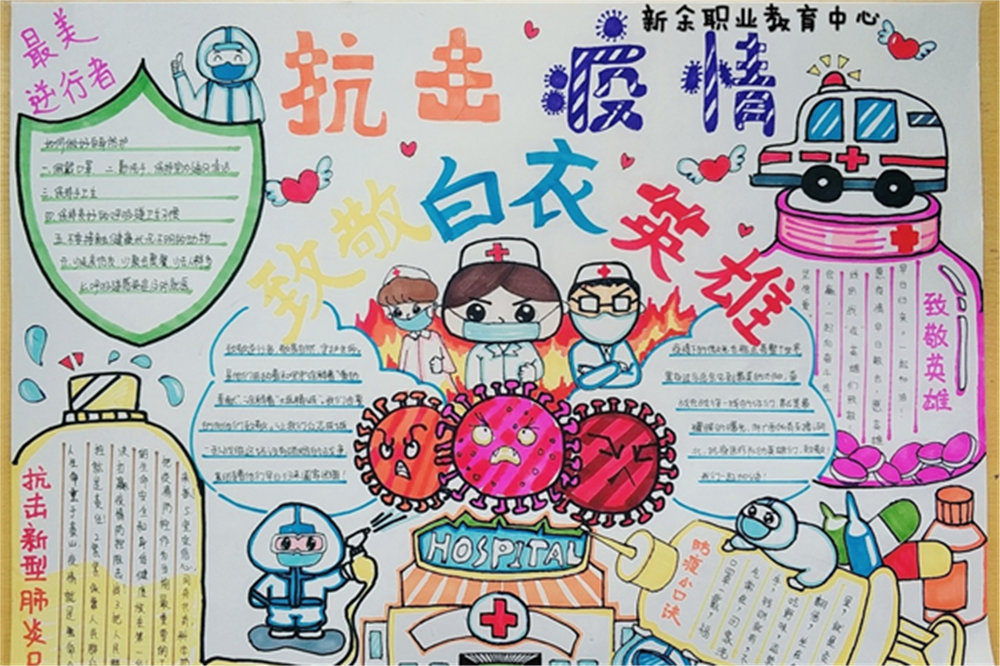 为进一步加强校园疫情防控知识宣传,向抗疫英雄学习致敬,共同营造文明健康、积极向上的班级文化氛围,11月第一周,校学生处组织开展了“防疫有我,与爱同行”主题板报手抄报评比活动。
