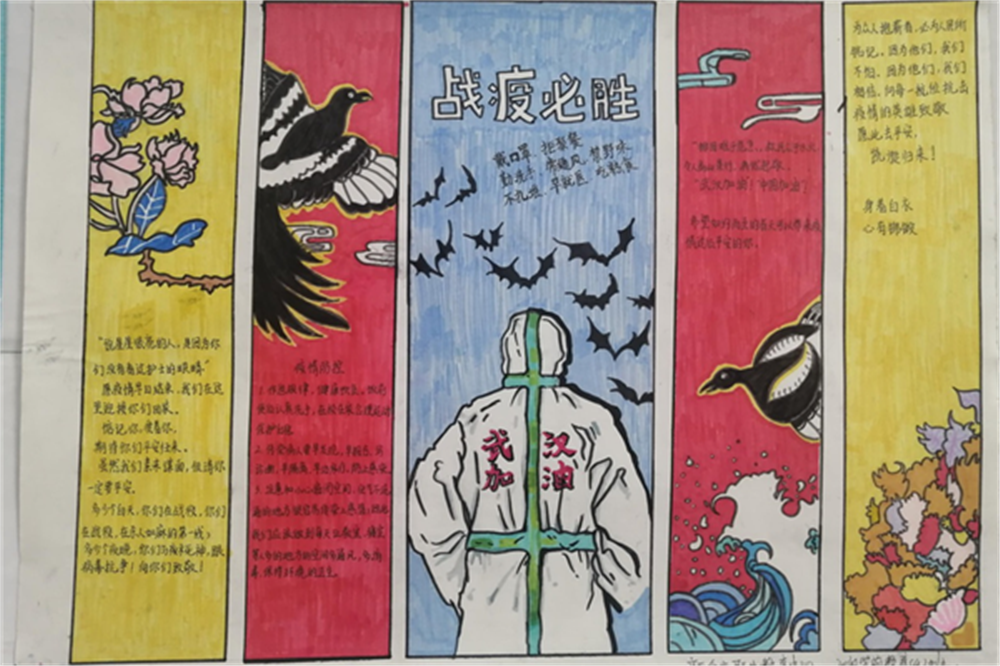 各班积极筹划、精心设计,用美观的字体、精巧的排版呈现了一幅生动有趣的画面。各班手抄报内容充实、色彩丰富、图文并茂、各具特色的黑板报映入眼帘,在欣赏美的同时,同学们也对疫情防控的相关知识和抗疫阻击战中的英雄事迹有了更深入的了解和认识。