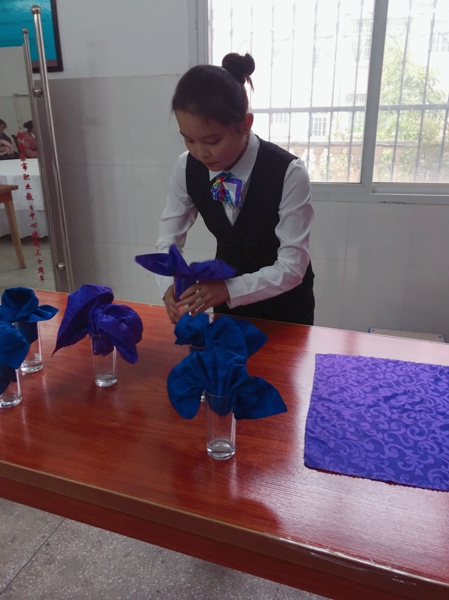 为了使学生能够将课堂所学知识运用于实践,能够具备一定的设计技能水平;同时开拓创新思维,激发创造灵感,充分展示自我才华,丰富学生的知识及技能,增强同学们的动手动脑能力,培养同学们的创新意识,我校于12月20日上午8点30举行了中餐宴会折花比赛,赛场上,同学们表现的都非常出色,赛出了水平,折出的花型,造型美观,花型逼真,在评委们公平、公正、公开地评分下,产生了一、二、三等奖。