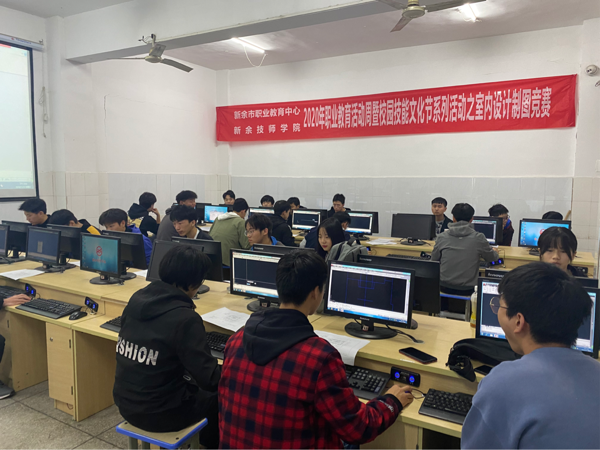 为提高我院学生CAD绘图技能水平,培养学生空间思维能力、创新能力和实践能力,充分展示学生的绘图技能, 11月13号上午,2020年职业教育活动周暨校园技能文化节系列活动之室内设计制图竞赛于A栋教学楼第七机房顺利举行。