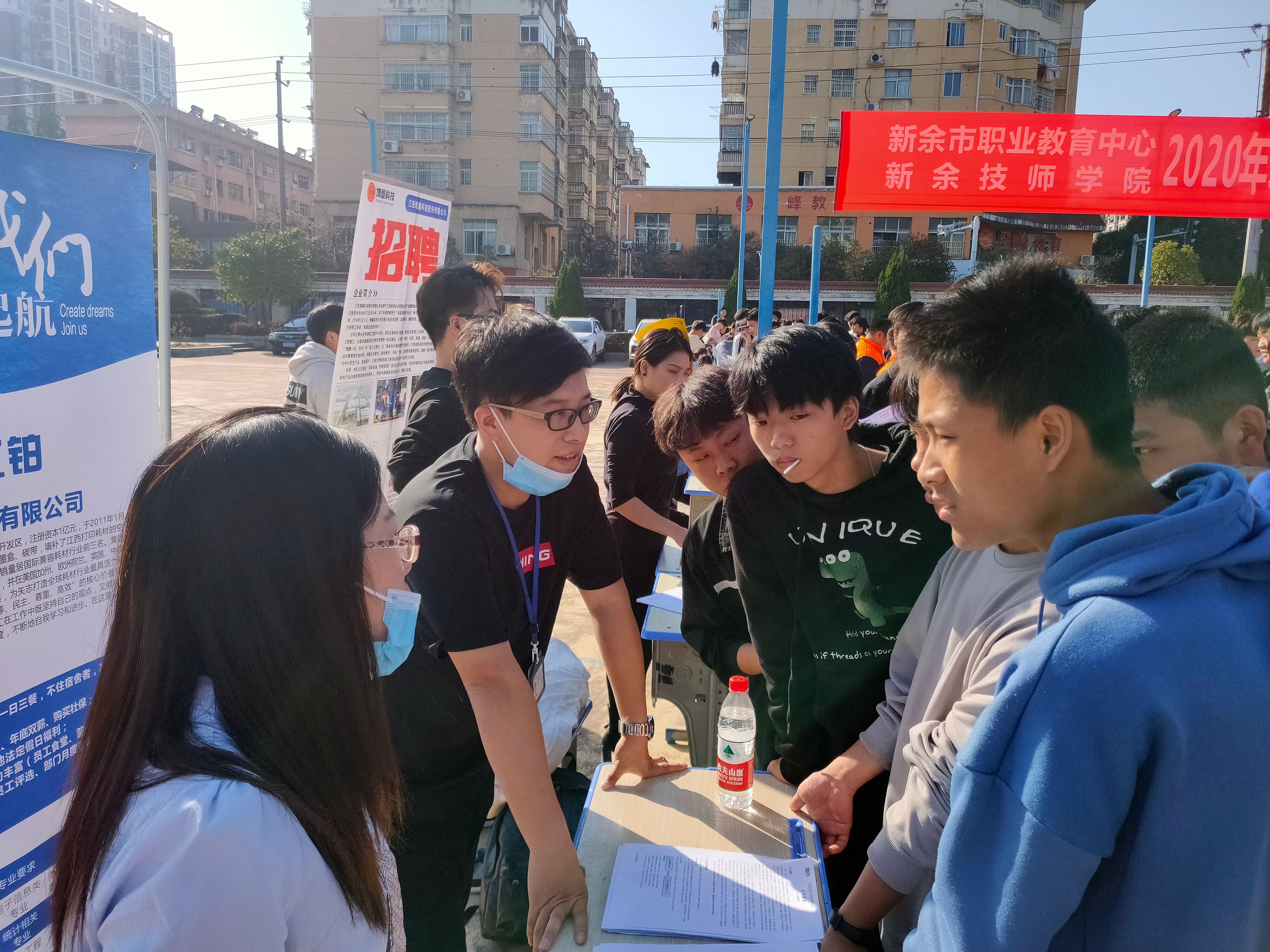 2020年11月12日下午,以“了解本地企业,服务本地经济发展”为主题的专场推介招聘会在新余市职业教育中心篮球场举行。近30家本地企业参加了此次活动,校长胡浩然和工会主席宋兵等相关领导也出席了本场推介招聘会。